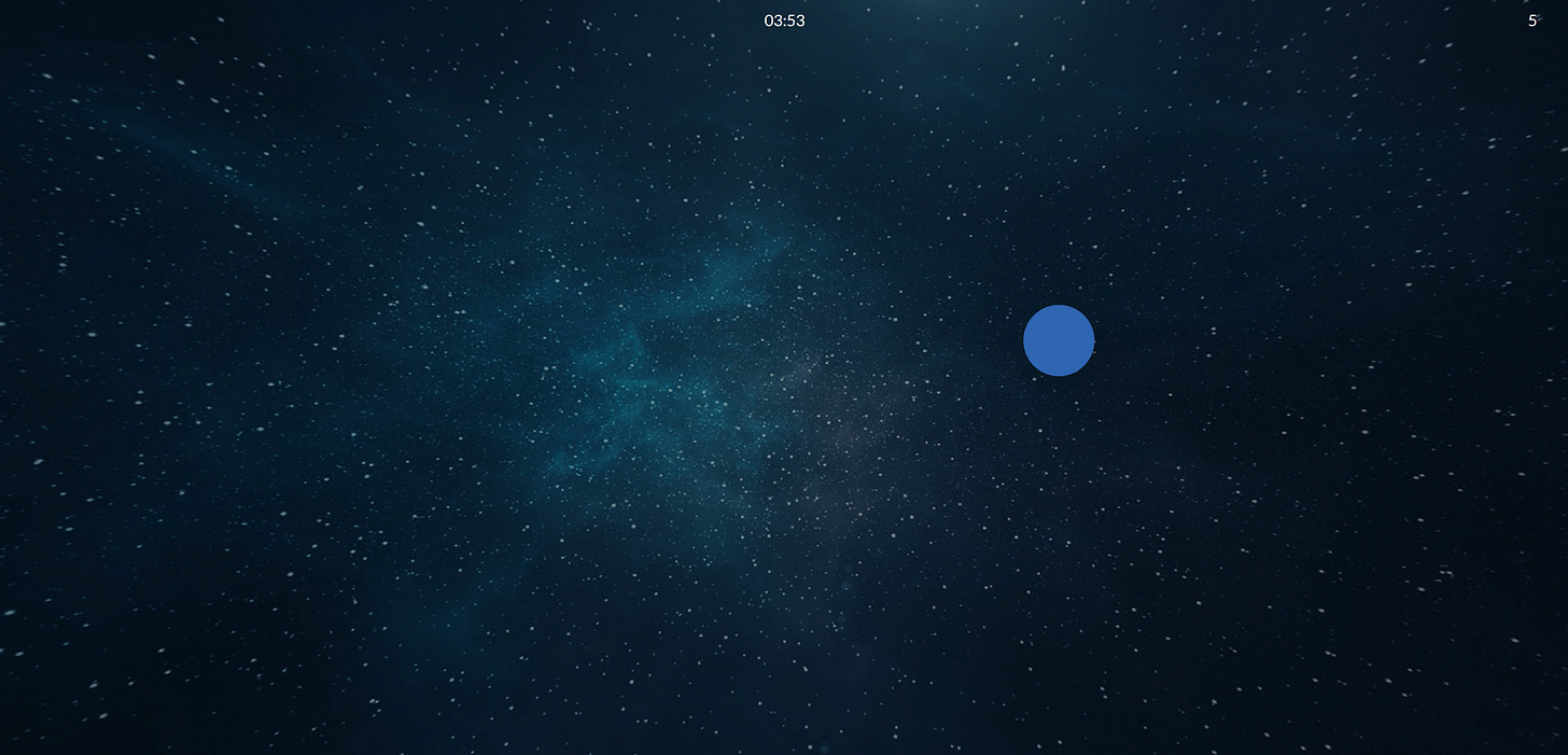 After I answered the intro questions and identified my Target, I started the EMDR feature of the app itself. There are a number of preset themes in the app — personally I like to use a Space background, Blue dot, and a bilateral cadence of about 20-25.